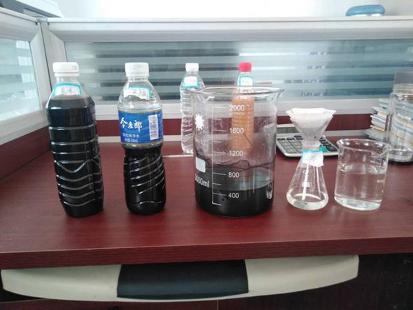 下圖便是農(nóng)藥污水處理前后對(duì)比圖,依次從左到右,是從污水到凈水的過程。
