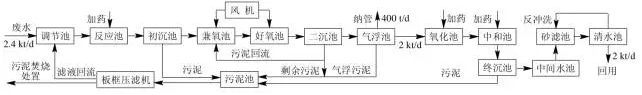 面對(duì)新的生產(chǎn)情況及《浙江省印染行業(yè)淘汰落后整治提升方案》要求,企業(yè)決定對(duì)現(xiàn)有廢水處理設(shè)施進(jìn)行擴(kuò)建、改造,并增加回用水處理設(shè)施,實(shí)現(xiàn)50%的中水回用率。工程總設(shè)計(jì)水量為4000m3/d,其中在原有污水站設(shè)計(jì)能力2400m3/d的基礎(chǔ)上新增設(shè)計(jì)水量1600m3/d。