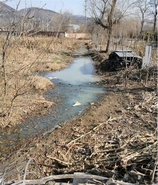 在華北某濱海城市一座村中,該村西側(cè)排水渠與鮑丘河交界處,一條約60米長(zhǎng)、8米寬的渠道被傾倒的各種垃圾堵塞,水渠已經(jīng)成為名副其實(shí)的“垃圾水道”。而在該村東北水渠河長(zhǎng)公示牌附近就有生活污水直接排入,水面漂浮綠色青苔、白色泡沫,散發(fā)刺鼻惡臭。