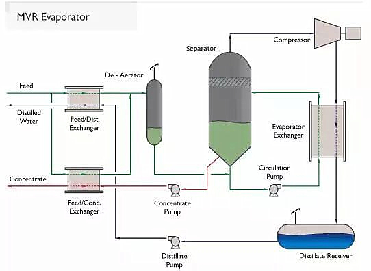 mvr蒸發(fā)器被稱為“機械式蒸汽再壓縮”蒸發(fā)器,是一種高效的節(jié)能蒸發(fā)設備。